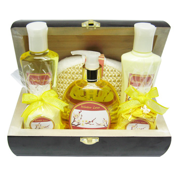 簡介: [產品名稱:] 沐浴套裝(冬戀) [產品描述:] 內容物: 沐浴露 200ml 潤膚露 200ml 泡泡浴 280ml 沐浴球 31g 浴鹽 160g 皂花 25g 木盒