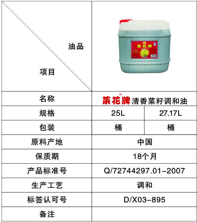 首頁 > > 盛業(yè)產(chǎn)品 > 菜花牌食用油