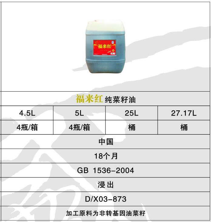 首頁(yè) > > 盛業(yè)產(chǎn)品 > 福來(lái)紅菜籽油